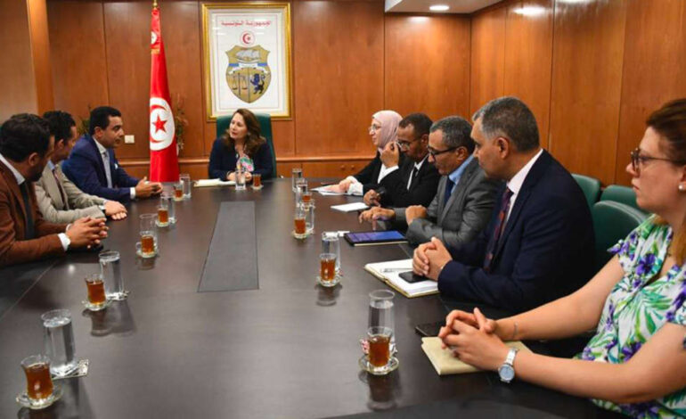 La ministre de l’Industrie, des Mines et de l’Énergie, Fatma Thabet Chiboub, a reçu hier mercredi au siège du ministère une délégation du groupe international SAGE AUTOMOTIVE, leader mondial dans la fabrication de textiles techniques destinés au secteur automobile. La délégation était conduite par Francesco Schettino, représentant du groupe, en présence de Afef Chachi Tayari, cheffe de cabinet, de Mourad Fradi, président de la Chambre tuniso-italienne de commerce et d’industrie, ainsi que de plusieurs hauts responsables du ministère.