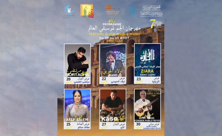 L’amphithéâtre d’El Jem, véritable bijou de l’Antiquité romaine tunisienne, s’apprête à vibrer au rythme de la 7ᵉ édition du Festival El Jem World Music, prévue du 20 au 31 août 2025.
