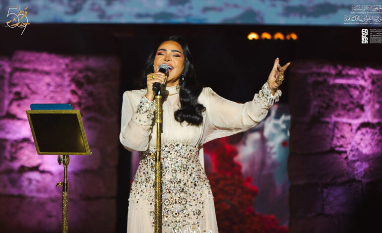 Grâce à son charisme et son magnétisme, elle a électrisé Carthage en reprenant des mélodies anciennes qui ont traversé les générations de fans et des tubes nouveaux qui ne manquent pas de charme. Rendant hommage à la chanson tunisienne, elle a interprété «Meguiez», une composition de Zied Gharsa. Les gradins s’enflamment en lançant des youyous, ce qui remplit le cœur de l’artiste de joie et de bonheur dans cette soirée qui restera gravée dans sa mémoire.