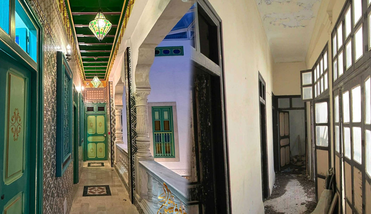 Durant des années, cet endroit fut laissée à l’abandon. Ses murs fissurés, ses plafonds abîmés et ses pierres rongées par le temps portaient les stigmates de la négligence. La maison, exposée aux intempéries et aux tentatives de vol, avait perdu l’éclat de son architecture arabe traditionnelle. Sa beauté silencieuse racontait une histoire de marginalisation et de désintérêt, à l’image de nombreuses demeures historiques tunisiennes menacées de disparition.