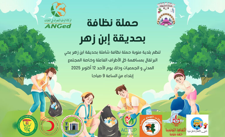 La municipalité de Manouba a organisé, ce dimanche, une journée de propreté et de sensibilisation à la protection de l’environnement au parc Ibn Zahr. L’initiative, centrée sur le nettoyage, le jardinage et la collecte des déchets, a réuni les agents municipaux, des associations locales ainsi que plusieurs représentants de la société civile.