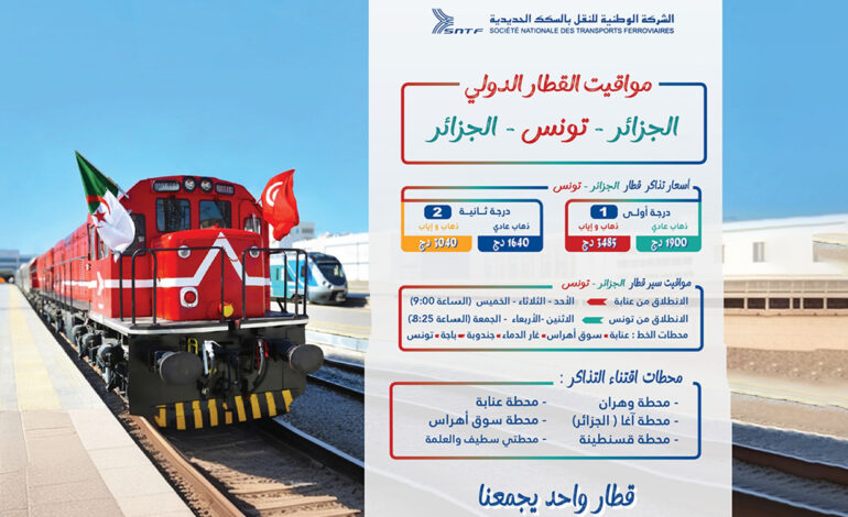 La société ajoute que les formalités douanières s’effectuent directement à bord, aux gares internationales de Souk Ahras côté algérien et de Ghardimaou côté tunisien, permettant aux passagers de franchir la frontière sans descendre du train. La SNTF précise aussi que les billets peuvent être achetés non seulement à Annaba et Souk Ahras, mais également dans les gares d’Alger, Oran et Constantine, afin de faciliter l’accès au service pour les voyageurs venant de différentes régions du pays.