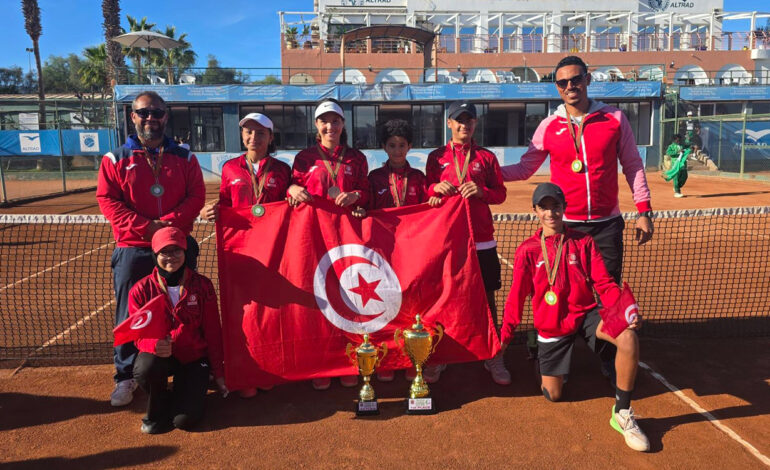 L’équipe nationale tunisienne a remporté deux médailles (une en or et une en bronze) à l’issue du Championnat d’Afrique de tennis pour la catégorie des moins de 12 ans, qui s’est achevé aujourd’hui au Maroc.