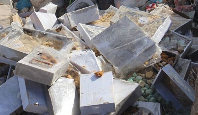 Les équipes de contrôle ont saisi 229 kg de fromage, 18 kg de viandes transformées (salamis), 4 kg de fromage blanc, 910 cartons de pizza et 200 assiettes, stockés au milieu de déchets.