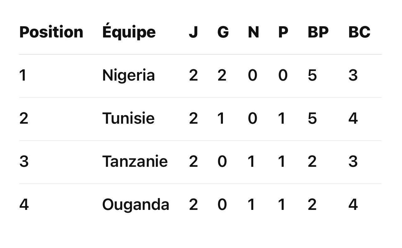 Après un début prometteur avec une victoire convaincante contre l’Ouganda (3-1), la Tunisie a été freinée par une défaite serrée contre le Nigeria (2-3). Une performance mitigée qui laisse le sélectionneur Sami Trabelsi décider d’un retour au schéma tactique en 4-3-3, déjà utilisé lors du succès inaugural face à l’Ouganda, après l’échec du 3-5-2 contre le Nigeria. Mohamed Ali Ben Ramadan devrait remplacer Sébastien Tonkati sur le flanc gauche, tandis qu’Ismaïl Ghrebbi pourrait être utilisé en seconde période comme atout offensif.