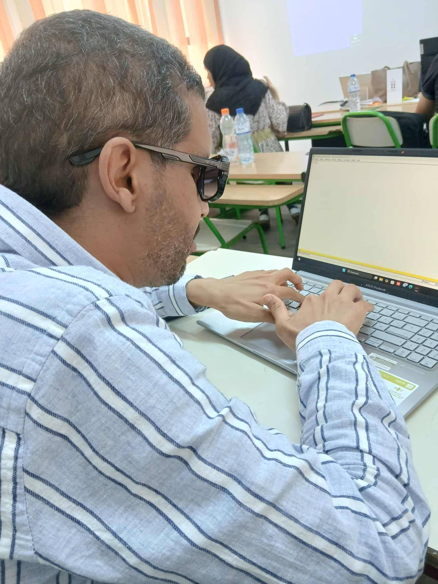 « C’est un travail colossal. Le personnel administratif, les enseignants et les étudiants collaborent ensemble. Des milliers de pages de cours, d’exercices et d’examens ont été préparés, de la première année licence au master, dans toutes les spécialités. Nous continuons toujours cette tâche, et c’est une ancienne étudiante malvoyante qui gère l’embossage ».