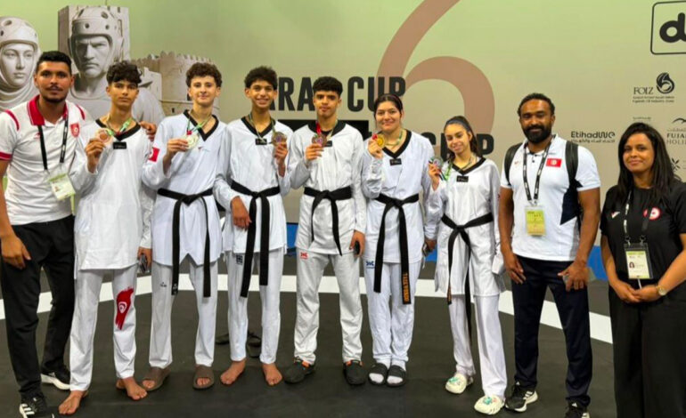 L’équipe nationale tunisienne de taekwondo (juniors garçons et filles) a brillamment remporté 9 médailles (2 en or, 4 en argent et 3 en bronze) lors de l’Open international de Fujairah, qui se déroule actuellement jusqu’au 9 février.