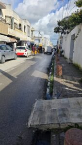 Les commerces ont grignoté chaque centimètre de bitume, qui soit-dit en passant ne dépasse jamais les 30 centimètres de largeur, ils forcent les piétons, y compris les enfants et les personnes âgées, à slalomer entre les étals sauvages, les constructions anarchiques et les voitures garées en épi sur des chaussées défoncées et totalement saccagées,pour se frayer le moindre chemin…